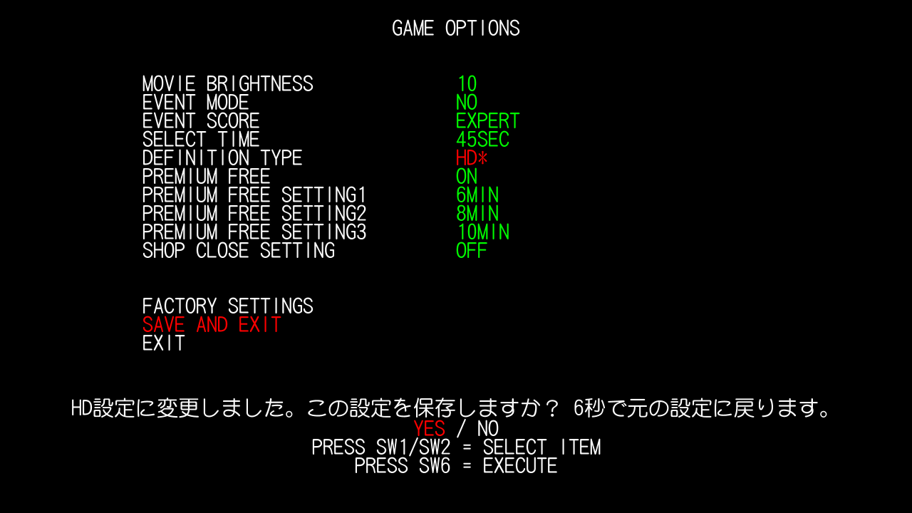Simply hit save and exit and leave, the clock will be saved. Then, back in the service menu, go up to GAME OPTIONS