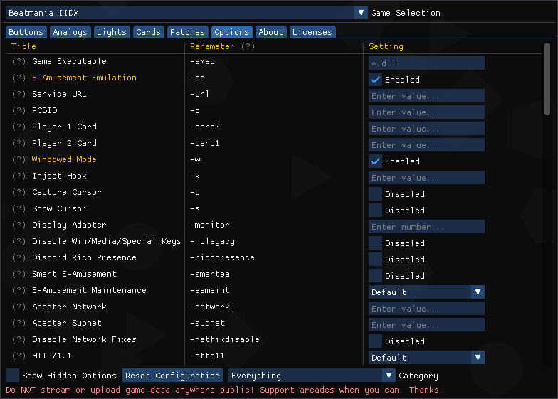 -eaenables an integrated e-amusement server within SpiceTools.-wwill boot the game in windowed mode which will ease our initial setup and testing later, make sure to remove-wto run the game fullscreen once you're done setting up!