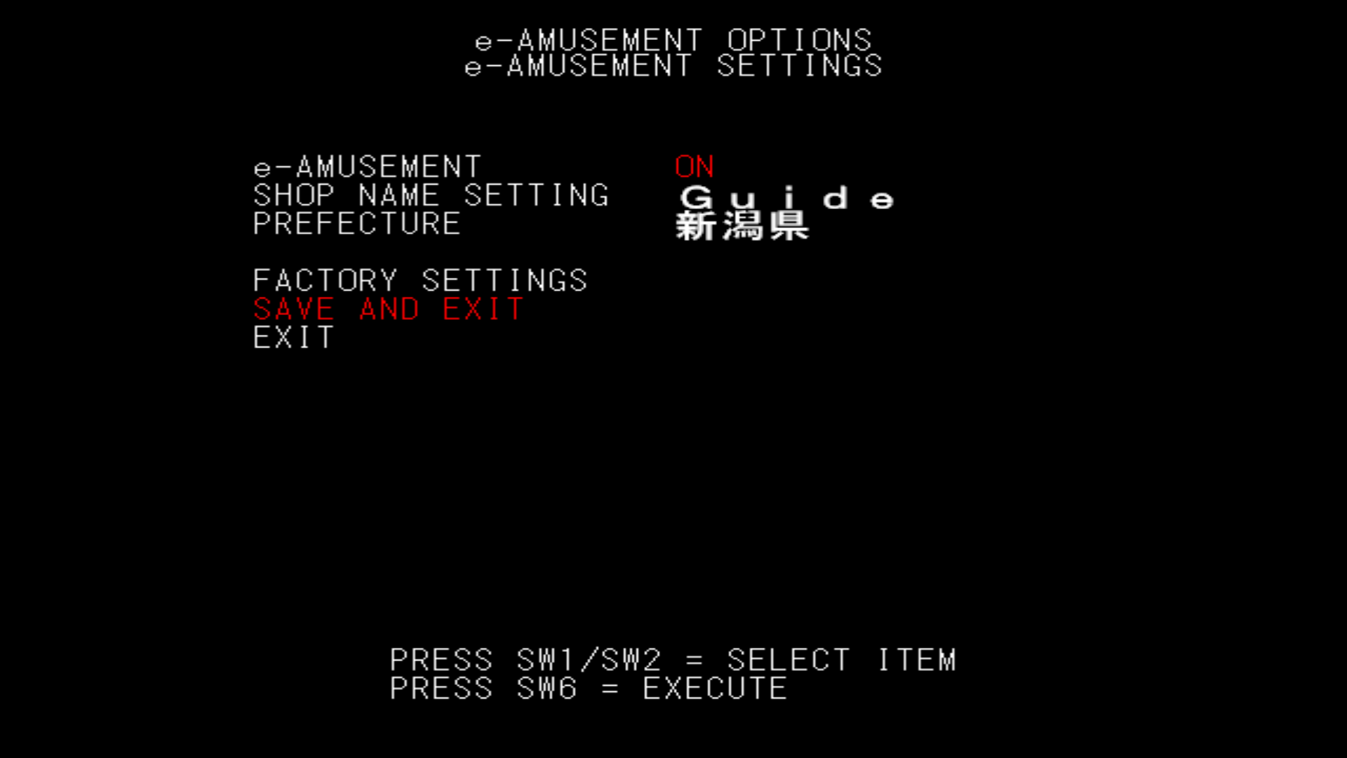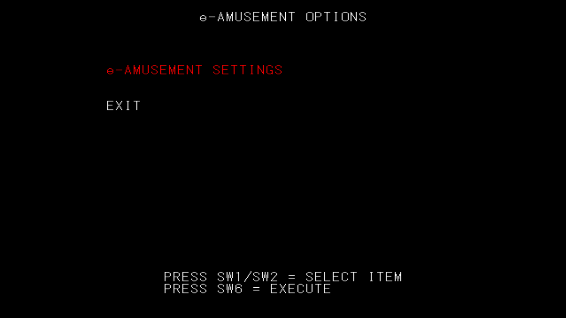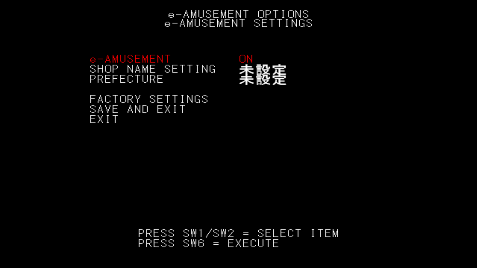 From the service menu, go to e-AMUSEMENT OPTIONS then e-AMUSEMENT SETTINGS.