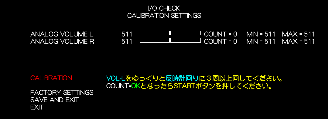 VOL-R Left) until the line saysCOUNT = OKthen pressStart. - Slowly turn your RIGHT knob clockwise (