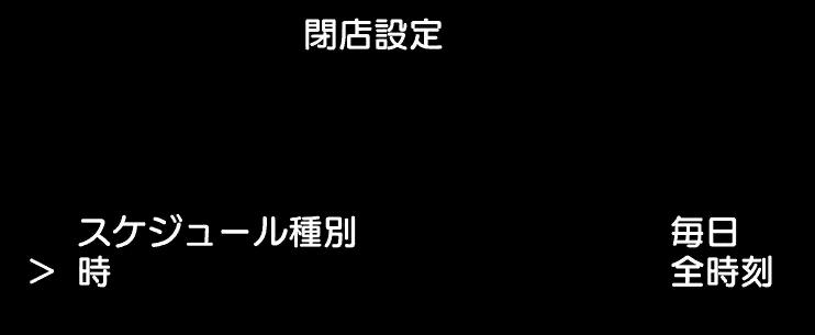 Navigate to 閉店設定 (CLOSE SETTING, the 10th option).